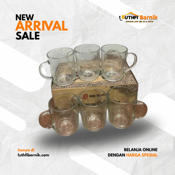 Gelas dari 6 pcs dalam 1 kotak, dan permukaan gelas ini ada motif bunga mawar yang timbul